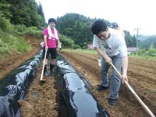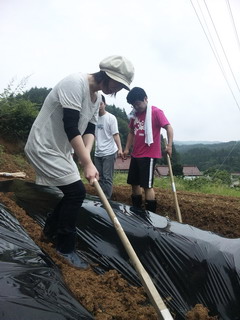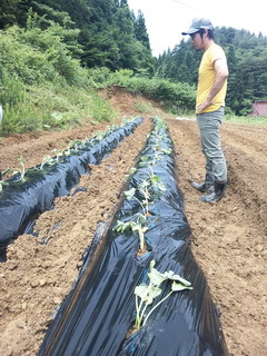 ☆くわを使って、土をマルチにかぶせていきます。昨年のキャベツ栽培でもくわを使う機会がありましたが、これがなかなか大変。。僕はぜんぜん上手くいきませんでした