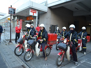 新年あけましておめでとうございます!今年は元旦から仕事があり、取材で気仙沼郵便局の年賀状配達の出発式にお邪魔しました!午前7時過ぎ、局員の皆さんが颯爽とバイクで出発。「行ってきます」の掛け声で、さわやかに出発していきました。皆さんのおかげで、こうして年賀状が確実に届けられていることにあらためて感謝です。プロとしての「使命感」を垣間見ることができ、新年1発目にふさわしい思い出に残る取材でした(^-^)