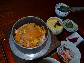 ふっくらとした五目ご飯の上に、カニやウニのほか、メーンのフカヒレ姿煮が豪華に乗っています(>_<)トロッとした食感がたまりません!これに茶碗蒸しや汁物、デザートがついて1500円はお得ですね。ぜひ皆さんも一度足を運んでみてください!