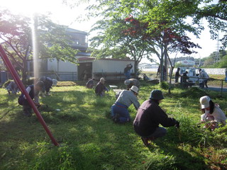 ☆公園内の草刈り。小さい頃から遊び場だった公園ですが、最近はあまり“遊ぶ”ことは少なくなりました。それでも、地区の皆さんと朝日を浴びながら、草刈りに汗を流しました。早朝の清掃活動も気持ちがいいもんですね~。
