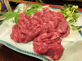 夜は今回のメインな目的・会津の馬肉・桜刺しを堪能します。