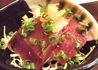 お通しは水揚げされたばかりの新鮮なかつおの刺身です!