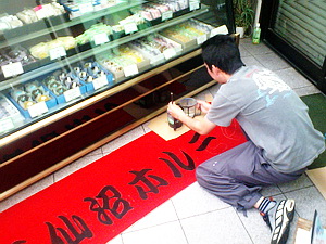昨日はコヤマにて、気仙沼ホルモン店ののれん作りを行いました!