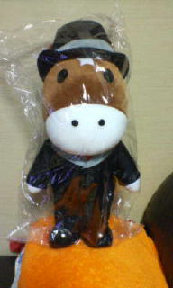 このイベントは、実際に馬が走っている所を走れるだけでも貴重なんだけど、さらに優勝すれば、司会のタレントさん(この時は、若槻千夏と岡部玲子でした)からインタビューされるし、優勝商品(画像のぬいぐるみは、優勝商品の一部です)ももらえるしと、オススメのイベントです\(^O^)/