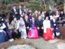 写真は煙雲館の庭園にて、みなさんと記念撮影風景です