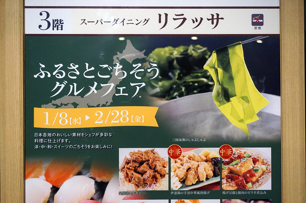 現在東京ドームホテルのレストラン「リラッサ」で開催中の「ふるさとごちそうグルメフェア」です。