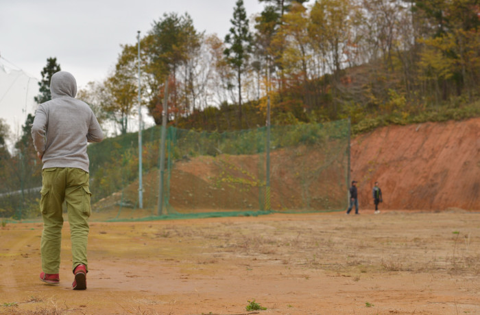 グランドの隅に人知れず現れた男、、、