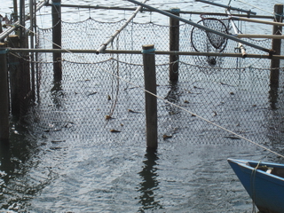 ウミネコが杭1本1本にとまってます。