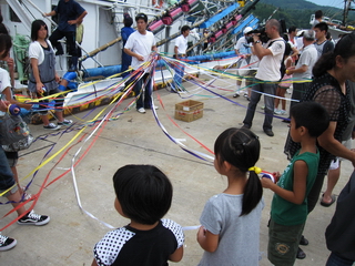 集まった関係者のみなさんに見送られてコの字岸壁から出船しました!