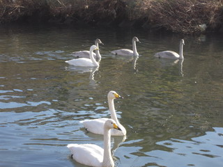 ☆かずきです。ここ数日、気仙沼も寒い日が続いていますね。雪もいよいよ本格化してきましたが、今日は少し穏やかな晴れの天気でした。そんな天気に誘われて、昼間に大川の白鳥を見に行ってきました