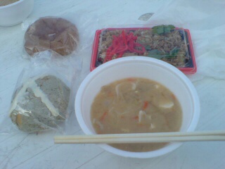 いも煮、そばめし、パン(1個50円でした!)