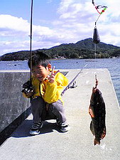 ☆息子のだいき(6才)を連れて、アドバイスどおりにあるポイントへ。開始して間もなく、二本の竿のうち、一本の竿がビクッとしなりました。「きたー!」と思ったのは良かったんだけど、掛かったのはだいきの方。さっそくリールを巻いてみると、なんとネウをゲット!これには、釣り初体験の息子も大喜びでした。
