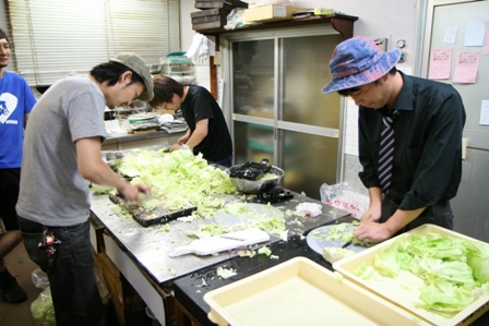 男だらけのキャベツ千切り大会」ミスター味っ子のようにキャベツが宙を舞ってました。