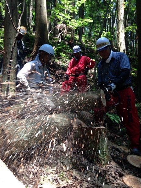 これは、間伐する技術(木を伐り、運び出すこと)を学び、山仕事に関心をもつ市民を増やしていこうとするもの。