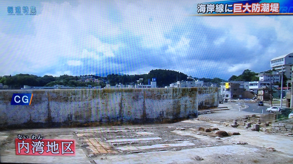 気仙沼内湾地区に建設予定の防潮堤を特集していました。