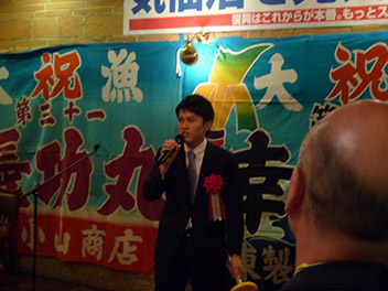 神戸岡本商店街の「気仙沼まただいん」の松田さんはわざわざこの会のために神戸からお越しいただきました。