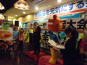 前回に引き続いて菅原市長が参加され、今年はなんとゆるきゃらグランプリで奮闘中のホヤぼーやが電撃参戦となりました。