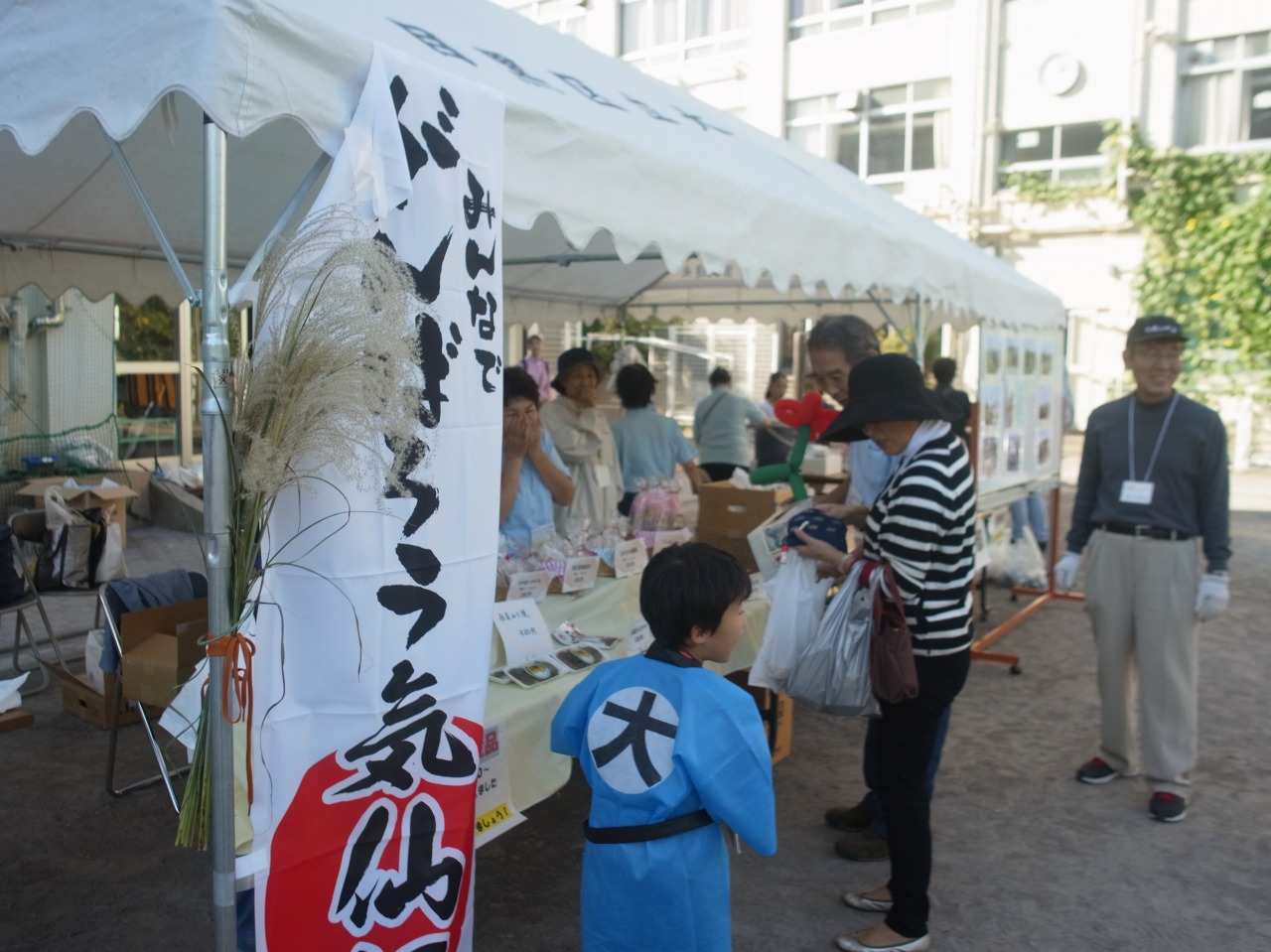 ↓また、帰り道に通った小学校では、住区のお祭りが開催され、