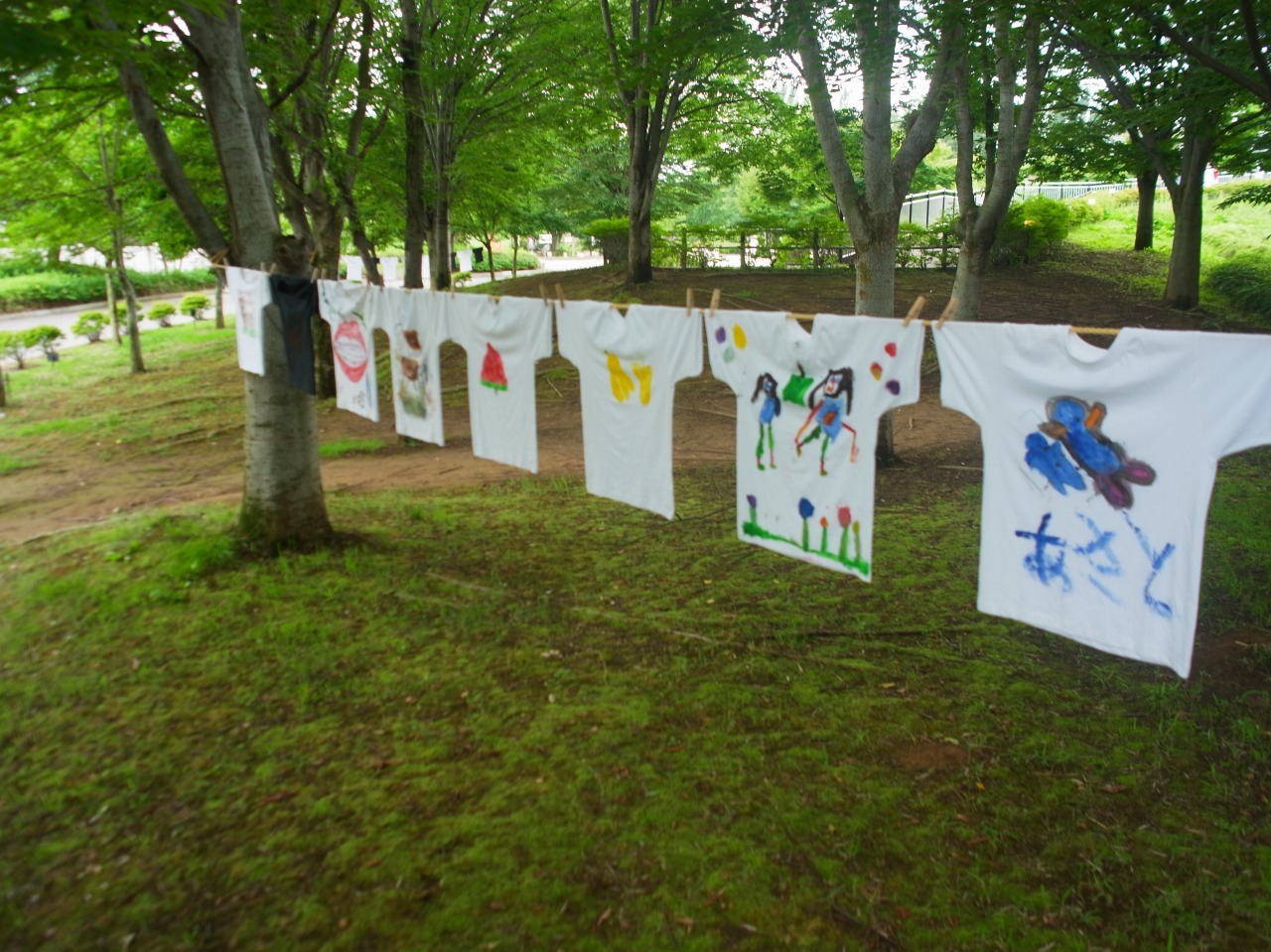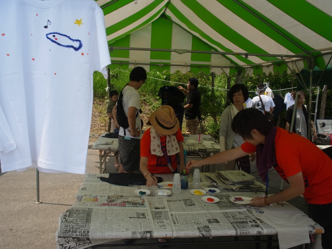 現在、Tシャツを使ったアートイベントを計画していまして、今日はみんなでTシャツに絵を描いていました。