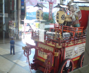青葉祭りの期間中なのでアーケード内に山車が控えていました。
