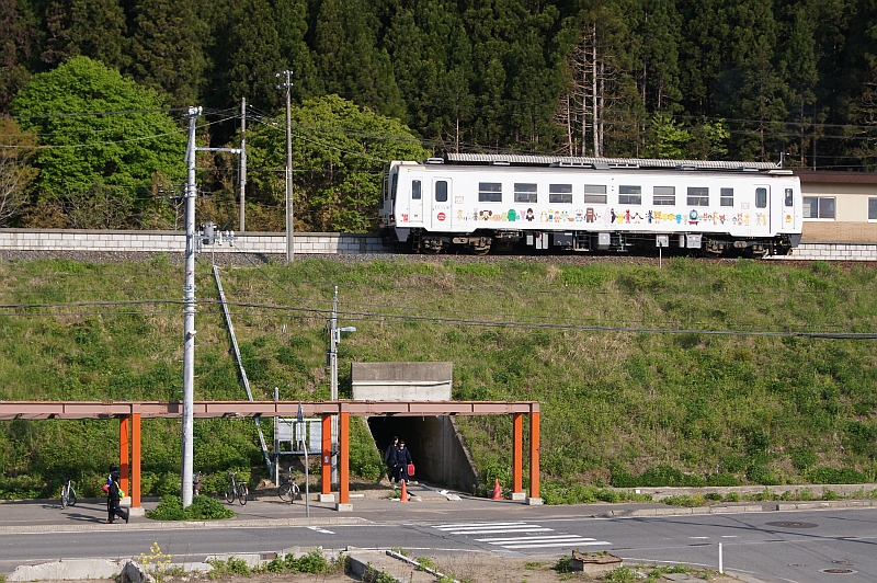 国道に戻り車を走らせていると、宮古行きの三陸鉄道北アリス線が田老駅に到着したところでした。