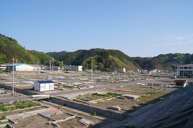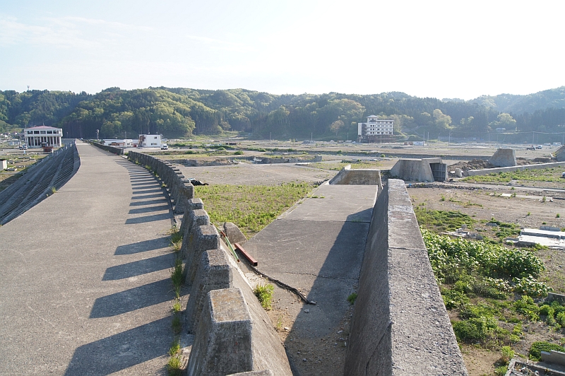 津波は海抜10mの高さにある堤防を軽々超えて町を飲み込み、今は基礎だけがここに人の営みがあったことを伝えています。