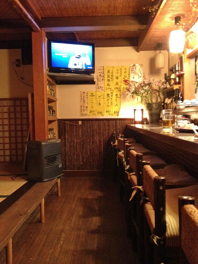 初・仮設商店街です。店内はカウンター6,7席程度で、テーブル席が3つくらいでした。