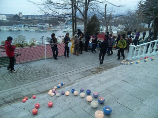 「Re:us気仙沼」が中心となり紫神社でキャンドルナイトが行われていました。