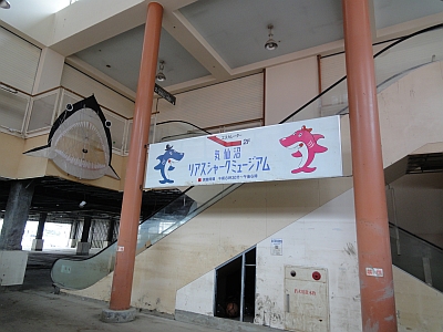 海の市の1階部分は、瓦礫などは撤去されてがらんとし、リアスシャークミュージアムの看板だけが残されてました。