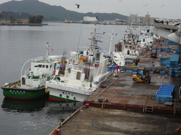 津波を免れた3階にある海事事務所に書類を届け、ふらりと魚市場の見学者デッキへ。