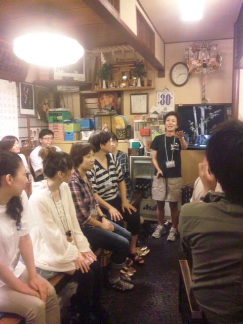 地元市民と全国から来ていただいているボランティアの方々との「つながり」づくりを目的に、6月から開いてきました。2週間ぶりの開催にもかかわらず、今夜は13名の皆さんにご参加いただきました(^^)