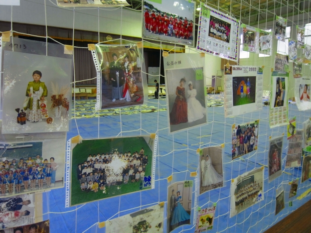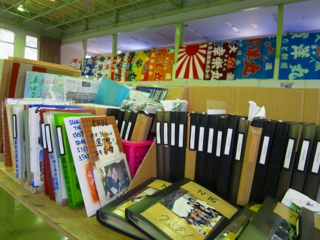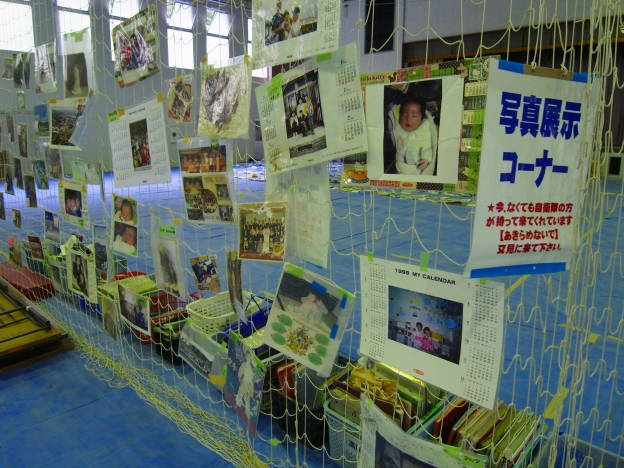 市内では、ガレキ撤去などの際に拾得した、個人の写真などの公開・引渡しが行われていますが、ここ唐桑体育館でも、唐桑地域のみならず、市内全域から集められた「大切な思い出の品」が公開されています。