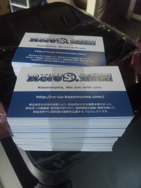 市内の印刷会社さん(阿部印刷さん、双葉印刷さん、愛隣オフセット印刷さん、須田印刷さん、菅原印刷さん)が力を合わせて、気仙沼応援の広報活動を始めたようです。