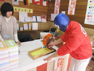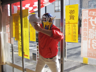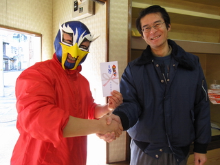 いつも大変お世話になっている内湾商店会のサジンさんと握手!