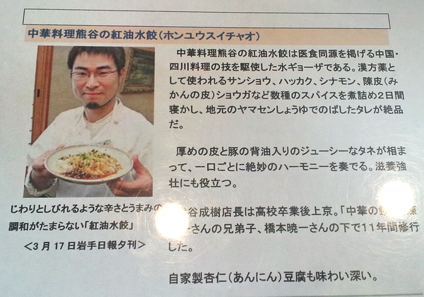 料理を作っている熊谷さんは、あの中華界の大御所、麻婆豆腐で有名な