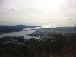 ☆この日もいつものように、太田入口経由で車で中腹まで移動。そこから頂上まで一気に駆け上がりました!写真は頂上から内湾を望む1枚。冒頭にも触れたように、ちょうどこの時間帯に「消防出初式」が港町の「海の道」周辺で行われていて、消防車のサイレンや「カン、カン、カン」の鐘の音を頂上から聞き取ることができました。多くの人で賑わっている様子が伝わってきましたよ(^^)/