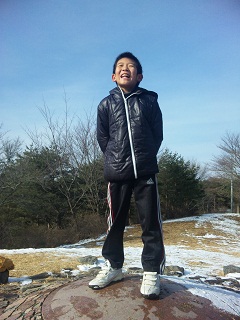 ☆せっかく頂上まで登ったということで、息子と2人で今年の抱負を大きな声で叫んでみることに・・。