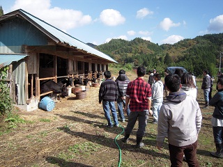 ☆「ヨウコソ、ヤッセへ。モ~」。牛さんたちも参加者の皆さんを歓迎してくれました。