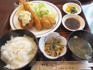 ☆「やまにし」さんといえば、名物・エビフライは有名ですが、その他にもパスタ、ハンバーグも多種多様のメニューがあります。最近では、サメのふか肉を使ったメンチカツなどの料理もリーズナブルに提供しています!
