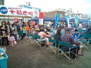 七輪広場のほうはというと、開店当初は出足が鈍かったものの、昼近くになるとどんどん混んできて、七輪の空き待ちの列が出来てました(^_^;)