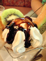 定番のチョコレートパフェはフルーツたっぷりで600円。
