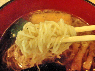 食べた感じでは魚介系と思われるダシが効いていて、細ちじれ麺の