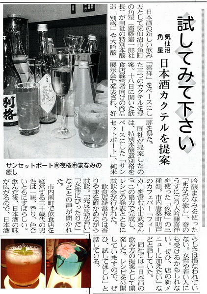 まだ詳しいカクテル内容は未定ですが、気仙沼の地酒