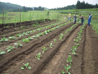 ☆気楽会では、地元の若手農業者グループ気仙沼市4Hクラブさんと昨年、交流企画としてキャベツ栽培に取り組みました。気仙沼ホルモンに合うキャベツをつくろう―ということで、4Hクラブ・吉田会長さんの畑の一画を「交流農園」としてお借りして栽培。収穫したおいしいキャベツを使って、みなとまつりの気仙沼ホルモン屋台でホルモンと一緒に販売しました。昨年の様子はこちら(http://kirakukai.blog.shinobi.jp/Entry/1397/)(http://kirakukai.blog.shinobi.jp/Entry/1464/)