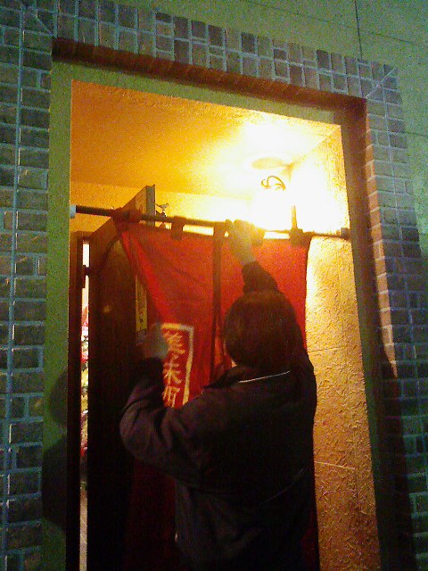 いそいそと暖簾を掲げます。