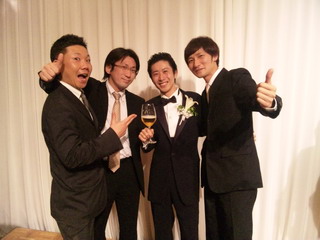 ☆ある人物とは、気楽会の発足メンバーの一人、晃ちゃん。平成18年10月の気楽会立ち上げ前に知り合った友人で、同い年ということもあり、仕事上でも尊敬する盟友の一人でした。現在は東京を拠点に、記者として頑張っています!結婚式には、気仙沼から僕とマックス、仙台から山ちゃんが駆けつけました。
