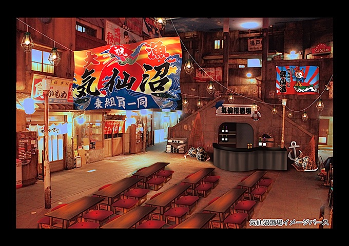 この気仙沼酒場はラーメン博物館の地下2階の広場がこの期間、気仙沼酒場に様変わり。気仙沼の美味しいものを知って、食べてもらうことを目的に、気仙沼の名物料理や気仙沼の名酒が昭和33年の街並みの中で味わえます。