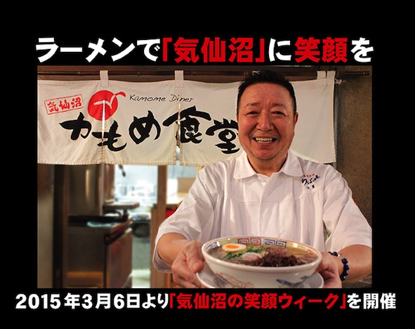 新横浜ラーメン博物館にて出店している「かもめ食堂」ですが、4月5日に卒業し、7月をめどに気仙沼で復活するとのことで、これを記念して3月6日から卒業までの一か月間「気仙沼の笑顔ウィーク」と題し、〈気仙沼酒場〉や特別展示「気仙沼の笑顔」そして気仙沼産品の物販などのイベントを開催するとのことです。