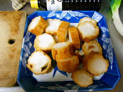 ①まず、油麩をサクサクっと程よく輪切りにします。