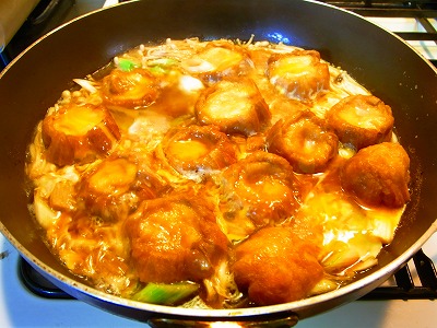 ④たれ1:水6の割合で割り、具を煮て(煮過ぎない)、溶き卵をまわすだけ。